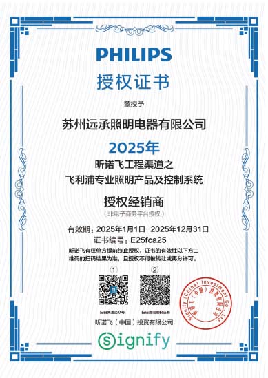 蘇州遠承照明電器有限公司是飛利浦照明經(jīng)銷商,以“誠信至上,追求卓越,為客戶創(chuàng)造價值”為企業(yè)精神,以此為堅定不移的信念,開拓進取,不斷創(chuàng)新,為廣大新老客戶提供更好的服務(wù)。